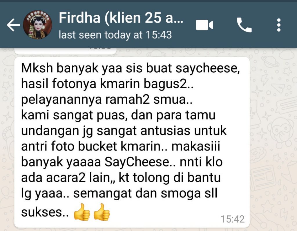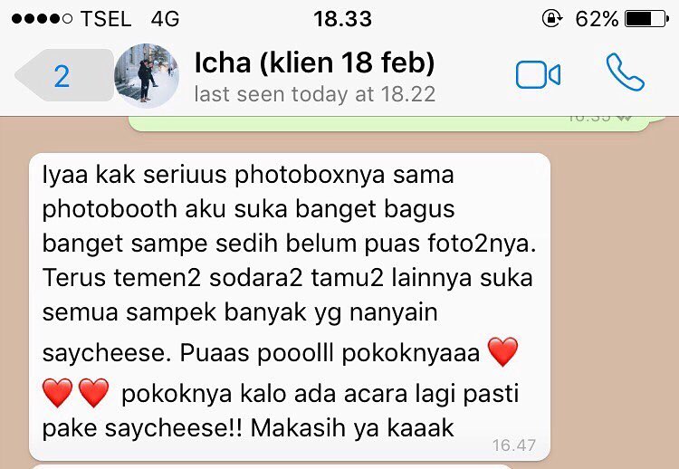 SayCheese adalah perusahaan penyedia Jasa Photobooth, Photostripe, Photobox, Mirrorbooth yang biasa dipakai pada berbagai macam Event seperti Wedding, Birthday, Graduation, Company Gathering, etc.